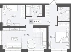 Продаётся 2-комнатная квартира в строящемся доме (ГП 2 (Сергея Корепанова, 34)), срок сдачи: IV-кв. 2027, общей площадью 62.2 кв.м., на 7 этаже. Новый жилой комплекс "Скандиа. Квартал у Леса" от Специализированного застройщика "СКАНДИА У ЛЕСА" расположен в г. Тюмень на ул. Бориса Прудаева.