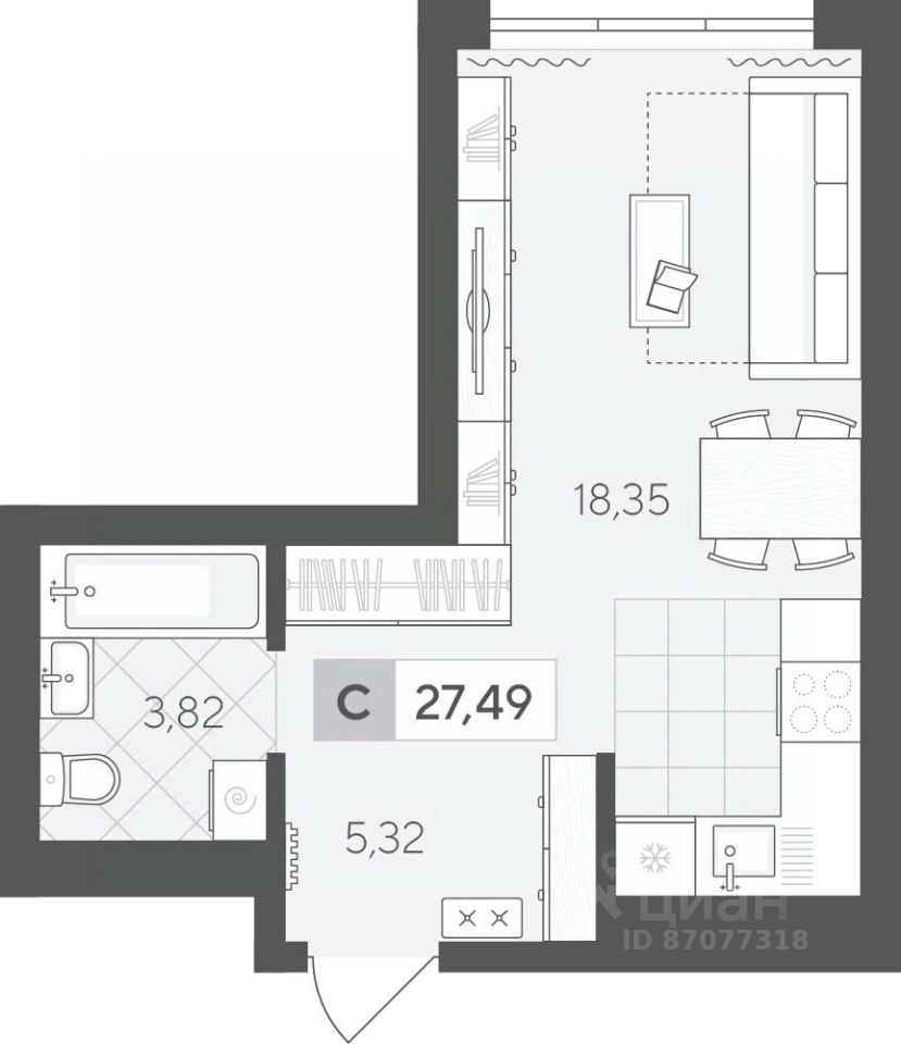 Продаётся студия в строящемся доме (ГП 2 (Сергея Корепанова, 34)), срок сдачи: IV-кв. 2027, общей площадью 27.49 кв.м., на 8 этаже. Новый жилой комплекс "Скандиа. Квартал у Леса" от Специализированного застройщика "СКАНДИА У ЛЕСА" расположен в г. Тюмень на ул. Бориса Прудаева.