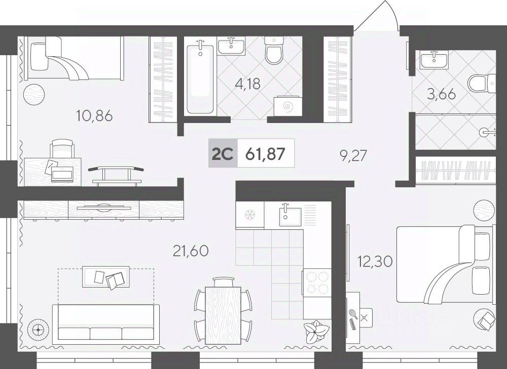 Продаётся 2-комнатная квартира в строящемся доме (ГП 2 (Сергея Корепанова, 34)), срок сдачи: IV-кв. 2027, общей площадью 61.87 кв.м., на 15 этаже. Новый жилой комплекс "Скандиа. Квартал у Леса" от Специализированного застройщика "СКАНДИА У ЛЕСА" расположен в г. Тюмень на ул. Бориса Прудаева.