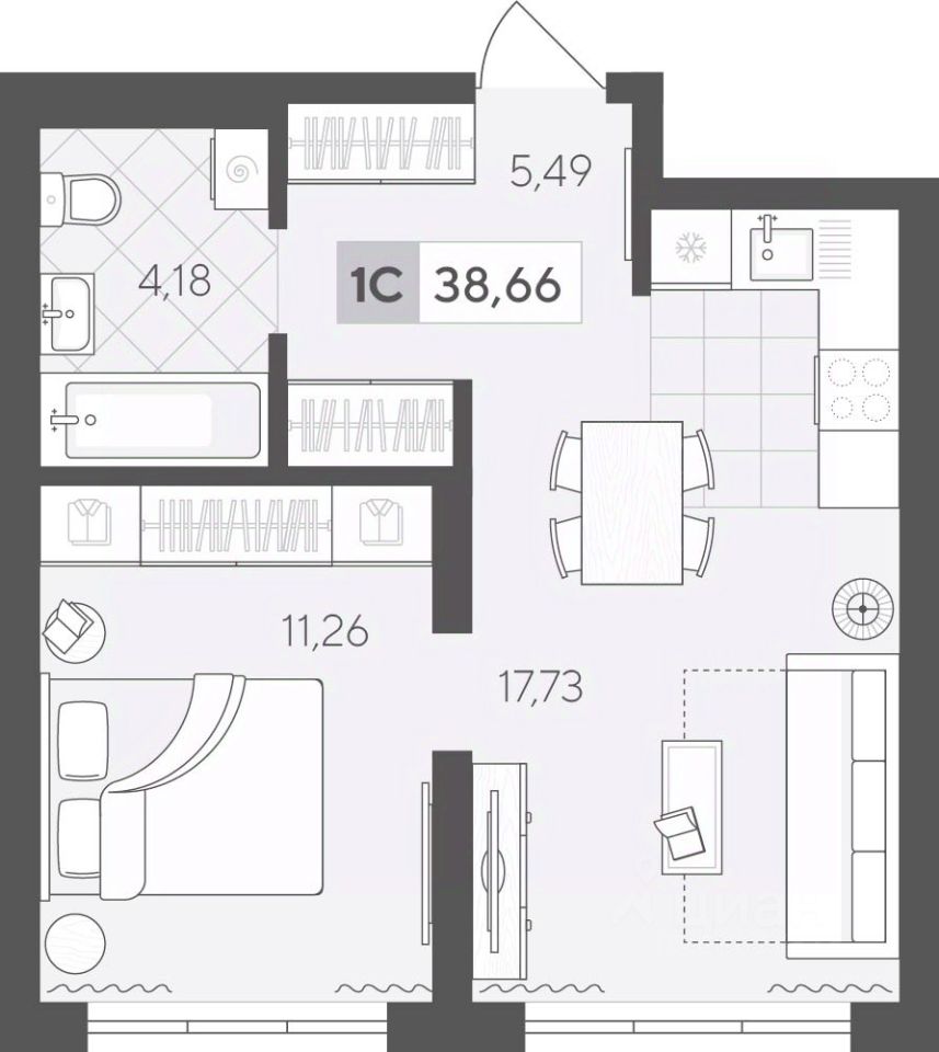 Продаётся 1-комнатная квартира в строящемся доме (ГП 2 (Сергея Корепанова, 34)), срок сдачи: IV-кв. 2027, общей площадью 38.66 кв.м., на 15 этаже. Новый жилой комплекс "Скандиа. Квартал у Леса" от Специализированного застройщика "СКАНДИА У ЛЕСА" расположен в г. Тюмень на ул. Бориса Прудаева.
