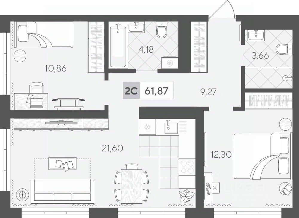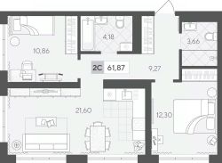 Продаётся 2-комнатная квартира в строящемся доме (ГП 2 (Сергея Корепанова, 34)), срок сдачи: IV-кв. 2027, общей площадью 61.87 кв.м., на 16 этаже. Новый жилой комплекс "Скандиа. Квартал у Леса" от Специализированного застройщика "СКАНДИА У ЛЕСА" расположен в г. Тюмень на ул. Бориса Прудаева.