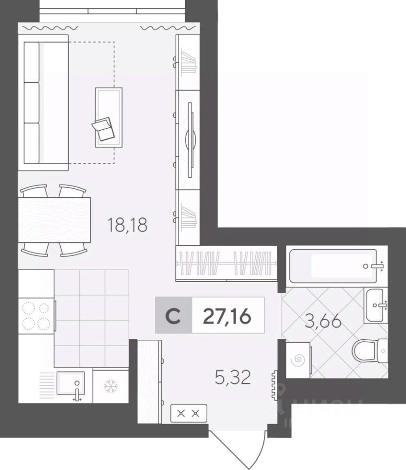 Продаётся студия в строящемся доме (ГП 2 (Сергея Корепанова, 34)), срок сдачи: IV-кв. 2027, общей площадью 27.16 кв.м., на 17 этаже. Новый жилой комплекс "Скандиа. Квартал у Леса" от Специализированного застройщика "СКАНДИА У ЛЕСА" расположен в г. Тюмень на ул. Бориса Прудаева.