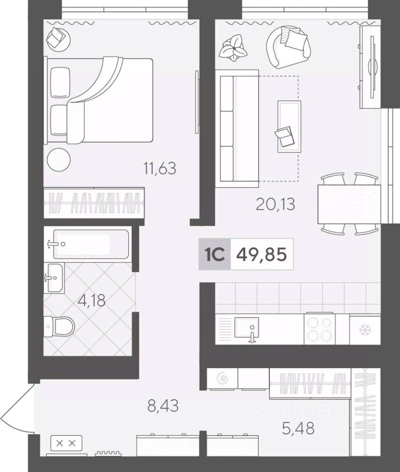 Продаётся 1-комнатная квартира в строящемся доме (ГП 2 (Сергея Корепанова, 34)), срок сдачи: IV-кв. 2027, общей площадью 49.85 кв.м., на 17 этаже. Новый жилой комплекс "Скандиа. Квартал у Леса" от Специализированного застройщика "СКАНДИА У ЛЕСА" расположен в г. Тюмень на ул. Бориса Прудаева.