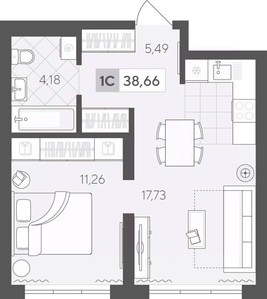 Продаётся 1-комнатная квартира в строящемся доме (ГП 2 (Сергея Корепанова, 34)), срок сдачи: IV-кв. 2027, общей площадью 38.66 кв.м., на 17 этаже. Новый жилой комплекс "Скандиа. Квартал у Леса" от Специализированного застройщика "СКАНДИА У ЛЕСА" расположен в г. Тюмень на ул. Бориса Прудаева.