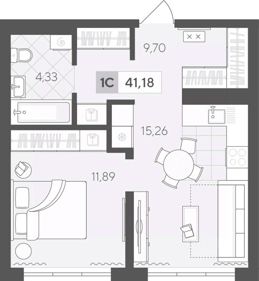 Продаётся 1-комнатная квартира в строящемся доме (ГП 2 (Сергея Корепанова, 34)), срок сдачи: IV-кв. 2027, общей площадью 41.18 кв.м., на 2 этаже. Новый жилой комплекс "Скандиа. Квартал у Леса" от Специализированного застройщика "СКАНДИА У ЛЕСА" расположен в г. Тюмень на ул. Бориса Прудаева.