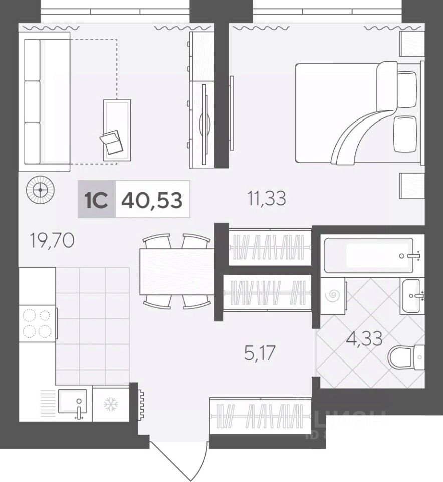 Продаётся 1-комнатная квартира в строящемся доме (ГП 2 (Сергея Корепанова, 34)), срок сдачи: IV-кв. 2027, общей площадью 40.53 кв.м., на 3 этаже. Новый жилой комплекс "Скандиа. Квартал у Леса" от Специализированного застройщика "СКАНДИА У ЛЕСА" расположен в г. Тюмень на ул. Бориса Прудаева.