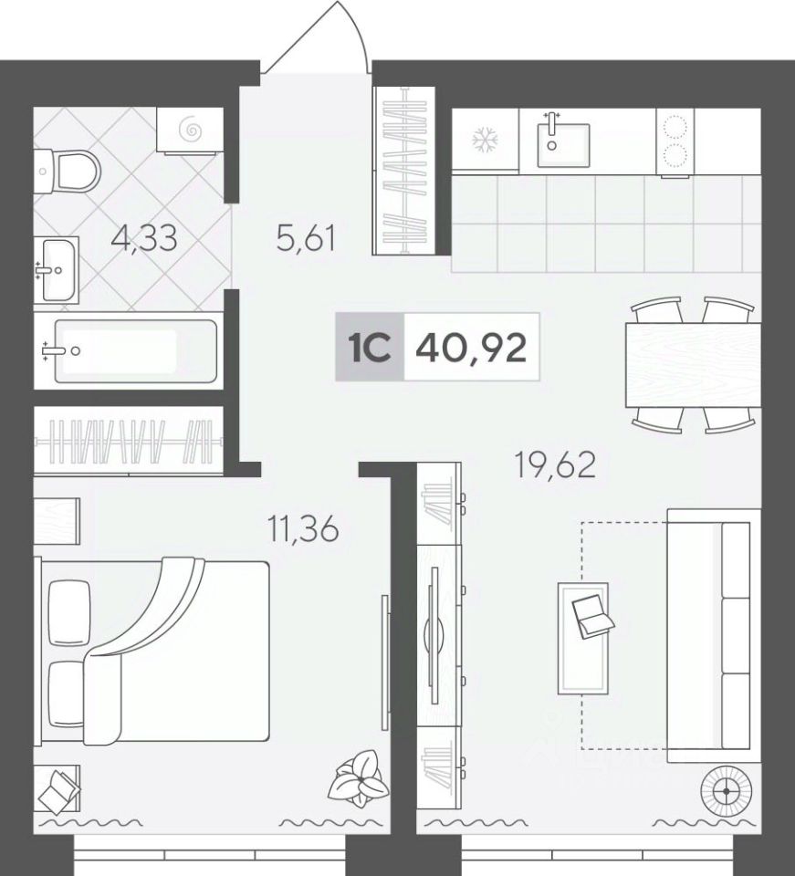 Продаётся 1-комнатная квартира в строящемся доме (ГП 2 (Сергея Корепанова, 34)), срок сдачи: IV-кв. 2027, общей площадью 40.92 кв.м., на 6 этаже. Новый жилой комплекс "Скандиа. Квартал у Леса" от Специализированного застройщика "СКАНДИА У ЛЕСА" расположен в г. Тюмень на ул. Бориса Прудаева.
