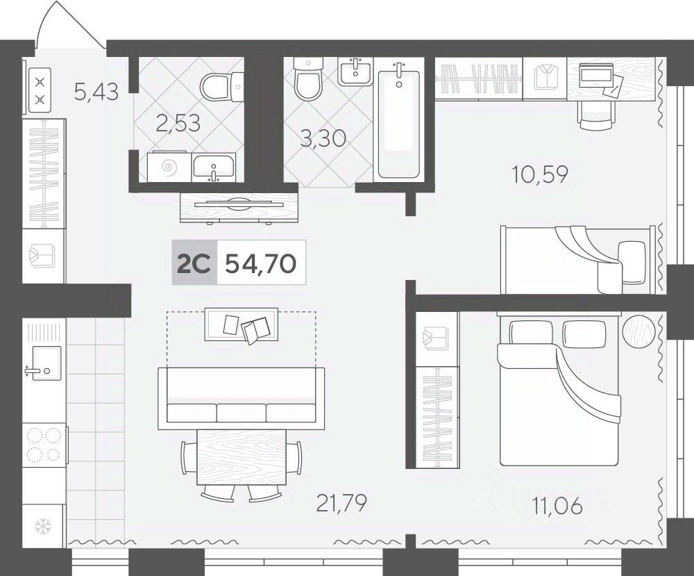Продаётся 2-комнатная квартира в строящемся доме (ГП 2 (Сергея Корепанова, 34)), срок сдачи: IV-кв. 2027, общей площадью 54.7 кв.м., на 6 этаже. Новый жилой комплекс "Скандиа. Квартал у Леса" от Специализированного застройщика "СКАНДИА У ЛЕСА" расположен в г. Тюмень на ул. Бориса Прудаева.