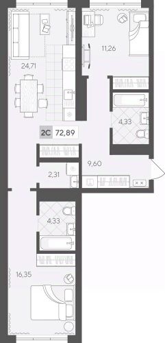 Продаётся 2-комнатная квартира в строящемся доме (ГП 2 (Сергея Корепанова, 34)), срок сдачи: IV-кв. 2027, общей площадью 72.89 кв.м., на 8 этаже. Новый жилой комплекс "Скандиа. Квартал у Леса" от Специализированного застройщика "СКАНДИА У ЛЕСА" расположен в г. Тюмень на ул. Бориса Прудаева.