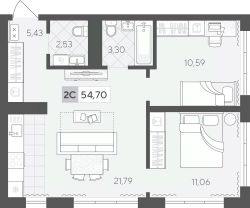 Продаётся 2-комнатная квартира в строящемся доме (ГП 2 (Сергея Корепанова, 34)), срок сдачи: IV-кв. 2027, общей площадью 54.7 кв.м., на 9 этаже. Новый жилой комплекс "Скандиа. Квартал у Леса" от Специализированного застройщика "СКАНДИА У ЛЕСА" расположен в г. Тюмень на ул. Бориса Прудаева.