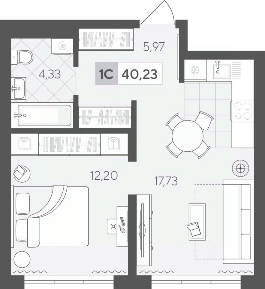 Продаётся 1-комнатная квартира в строящемся доме (ГП 2 (Сергея Корепанова, 34)), срок сдачи: IV-кв. 2027, общей площадью 40.23 кв.м., на 2 этаже. Новый жилой комплекс "Скандиа. Квартал у Леса" от Специализированного застройщика "СКАНДИА У ЛЕСА" расположен в г. Тюмень на ул. Бориса Прудаева.
