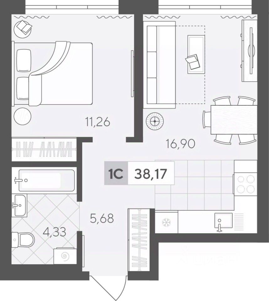 Продаётся 1-комнатная квартира в строящемся доме (ГП 2 (Сергея Корепанова, 34)), срок сдачи: IV-кв. 2027, общей площадью 38.17 кв.м., на 4 этаже. Новый жилой комплекс "Скандиа. Квартал у Леса" от Специализированного застройщика "СКАНДИА У ЛЕСА" расположен в г. Тюмень на ул. Бориса Прудаева.