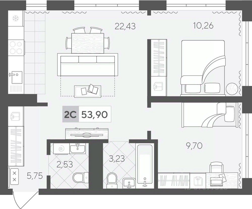 Продаётся 2-комнатная квартира в строящемся доме (ГП 2 (Сергея Корепанова, 34)), срок сдачи: IV-кв. 2027, общей площадью 53.9 кв.м., на 6 этаже. Новый жилой комплекс "Скандиа. Квартал у Леса" от Специализированного застройщика "СКАНДИА У ЛЕСА" расположен в г. Тюмень на ул. Бориса Прудаева.