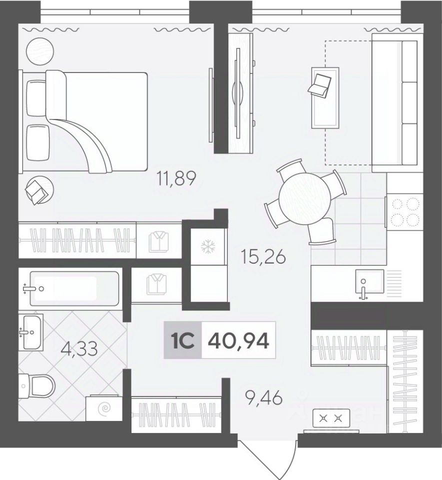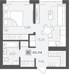 Продаётся 1-комнатная квартира в строящемся доме (ГП 2 (Сергея Корепанова, 34)), срок сдачи: IV-кв. 2027, общей площадью 40.94 кв.м., на 6 этаже. Новый жилой комплекс "Скандиа. Квартал у Леса" от Специализированного застройщика "СКАНДИА У ЛЕСА" расположен в г. Тюмень на ул. Бориса Прудаева.