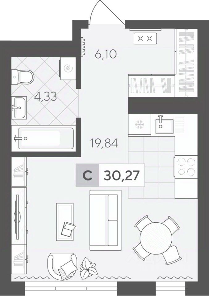 Продаётся студия в строящемся доме (ГП 2 (Сергея Корепанова, 34)), срок сдачи: IV-кв. 2027, общей площадью 30.27 кв.м., на 8 этаже. Новый жилой комплекс "Скандиа. Квартал у Леса" от Специализированного застройщика "СКАНДИА У ЛЕСА" расположен в г. Тюмень на ул. Бориса Прудаева.