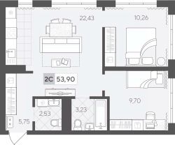 Продаётся 2-комнатная квартира в строящемся доме (ГП 2 (Сергея Корепанова, 34)), срок сдачи: IV-кв. 2027, общей площадью 53.9 кв.м., на 10 этаже. Новый жилой комплекс "Скандиа. Квартал у Леса" от Специализированного застройщика "СКАНДИА У ЛЕСА" расположен в г. Тюмень на ул. Бориса Прудаева.