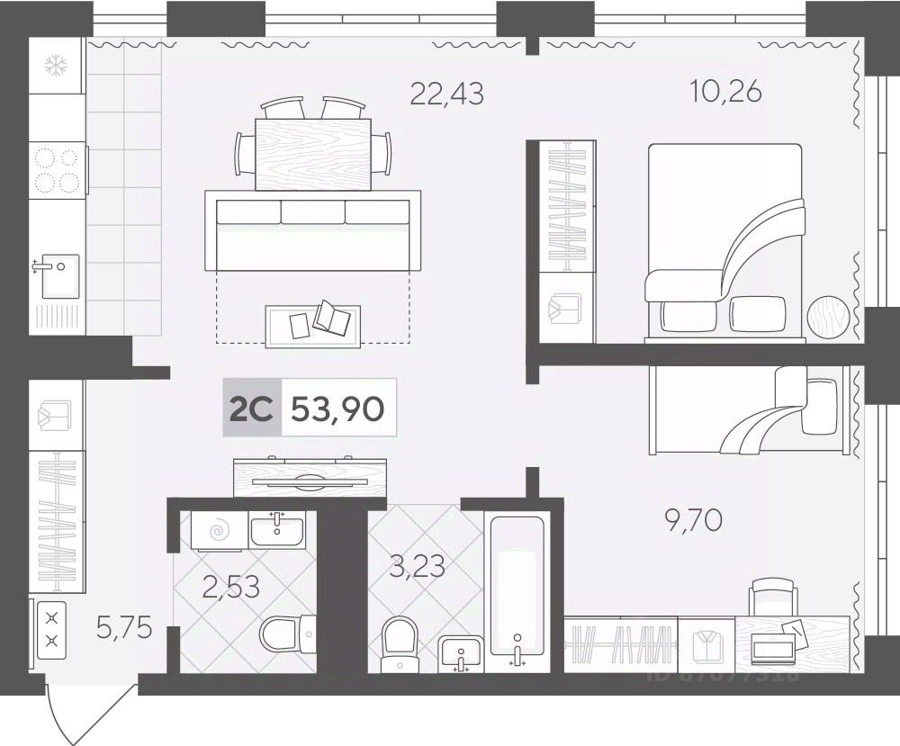 Продаётся 2-комнатная квартира в строящемся доме (ГП 2 (Сергея Корепанова, 34)), срок сдачи: IV-кв. 2027, общей площадью 53.9 кв.м., на 14 этаже. Новый жилой комплекс "Скандиа. Квартал у Леса" от Специализированного застройщика "СКАНДИА У ЛЕСА" расположен в г. Тюмень на ул. Бориса Прудаева.