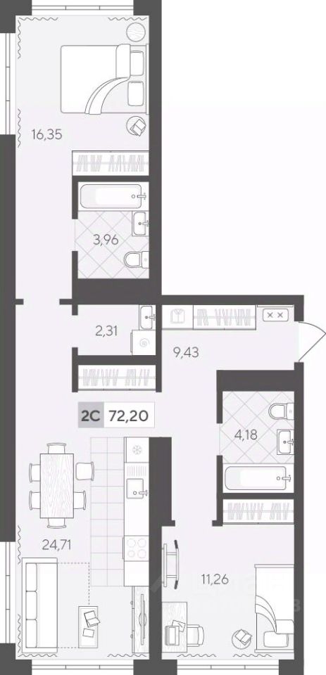 Продаётся 2-комнатная квартира в строящемся доме (ГП 2 (Сергея Корепанова, 34)), срок сдачи: IV-кв. 2027, общей площадью 72.2 кв.м., на 15 этаже. Новый жилой комплекс "Скандиа. Квартал у Леса" от Специализированного застройщика "СКАНДИА У ЛЕСА" расположен в г. Тюмень на ул. Бориса Прудаева.