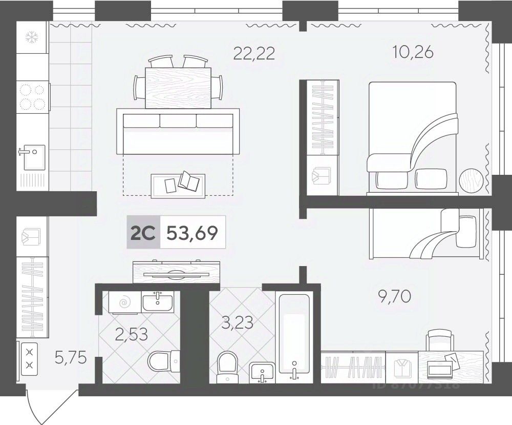 Продаётся 2-комнатная квартира в строящемся доме (ГП 2 (Сергея Корепанова, 34)), срок сдачи: IV-кв. 2027, общей площадью 53.69 кв.м., на 17 этаже. Новый жилой комплекс "Скандиа. Квартал у Леса" от Специализированного застройщика "СКАНДИА У ЛЕСА" расположен в г. Тюмень на ул. Бориса Прудаева.