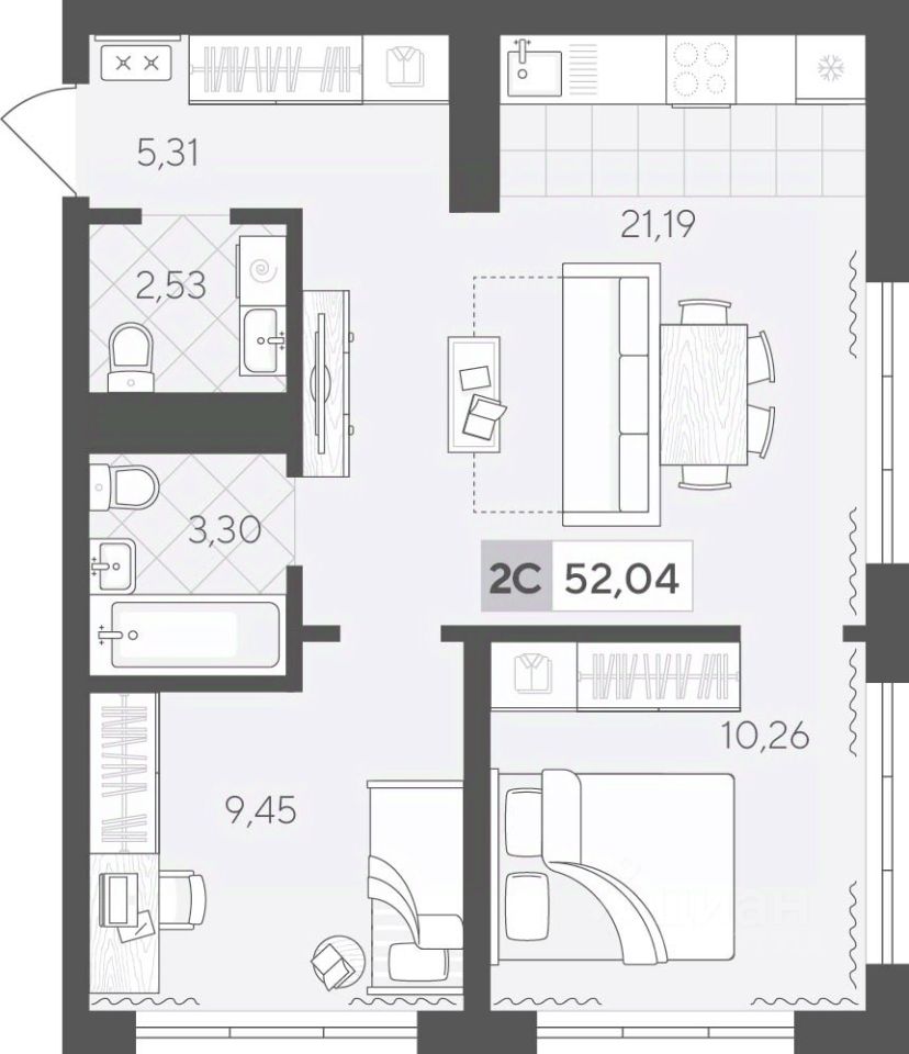 Продаётся 2-комнатная квартира в строящемся доме (ГП 2 (Сергея Корепанова, 34)), срок сдачи: IV-кв. 2027, общей площадью 52.04 кв.м., на 17 этаже. Новый жилой комплекс "Скандиа. Квартал у Леса" от Специализированного застройщика "СКАНДИА У ЛЕСА" расположен в г. Тюмень на ул. Бориса Прудаева.