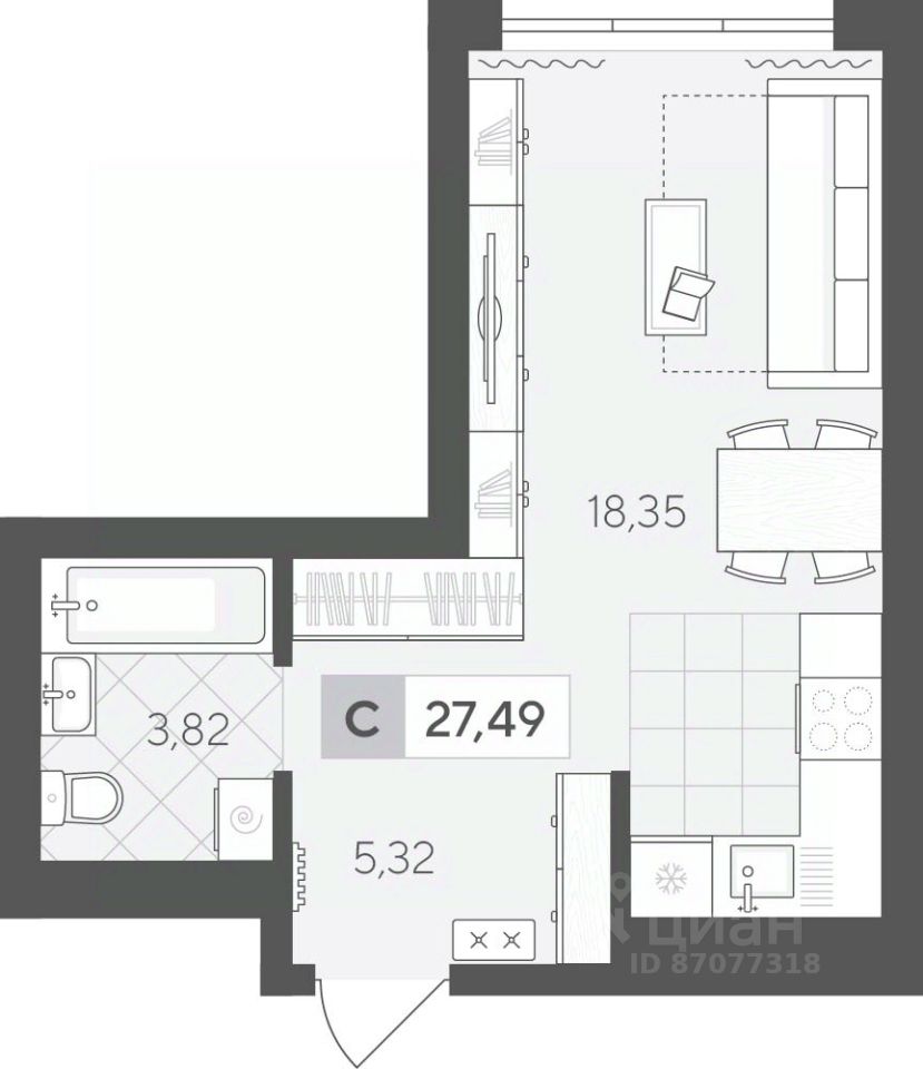 Продаётся студия в строящемся доме (ГП 2 (Сергея Корепанова, 34)), срок сдачи: IV-кв. 2027, общей площадью 27.49 кв.м., на 7 этаже. Новый жилой комплекс "Скандиа. Квартал у Леса" от Специализированного застройщика "СКАНДИА У ЛЕСА" расположен в г. Тюмень на ул. Бориса Прудаева.