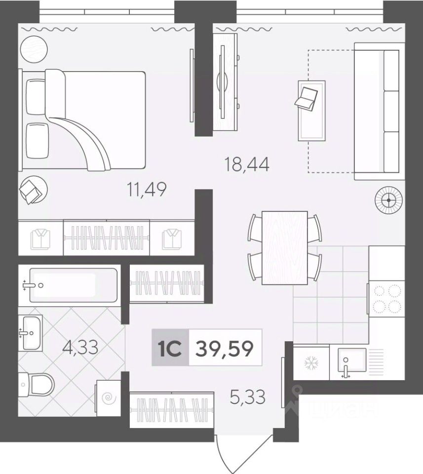 Продаётся 1-комнатная квартира в строящемся доме (ГП 2 (Сергея Корепанова, 34)), срок сдачи: IV-кв. 2027, общей площадью 39.59 кв.м., на 9 этаже. Новый жилой комплекс "Скандиа. Квартал у Леса" от Специализированного застройщика "СКАНДИА У ЛЕСА" расположен в г. Тюмень на ул. Бориса Прудаева.