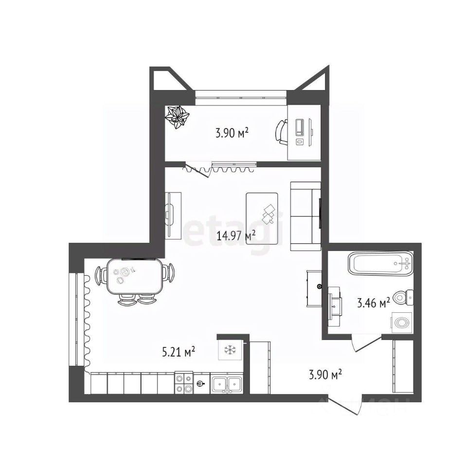 ОБЪЕКТ: студия, площадь 31,5 кв.м.,9 этаж 22-этажного дома