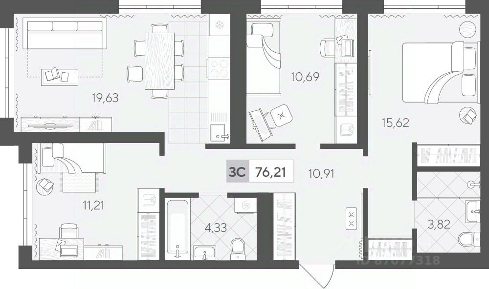 Продаётся 3-комнатная квартира в строящемся доме (ГП 2 (Сергея Корепанова, 34)), срок сдачи: IV-кв. 2027, общей площадью 76.21 кв.м., на 4 этаже. Новый жилой комплекс "Скандиа. Квартал у Леса" от Специализированного застройщика "СКАНДИА У ЛЕСА" расположен в г. Тюмень на ул. Бориса Прудаева.