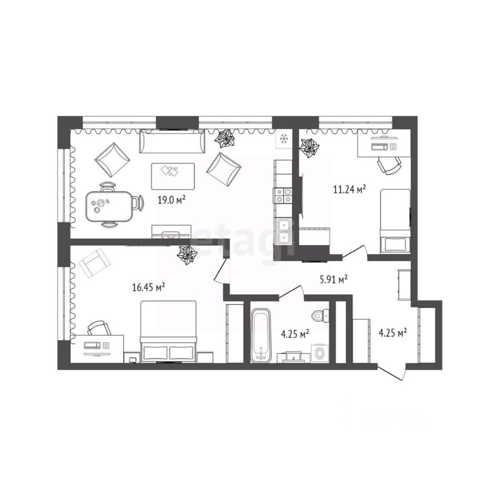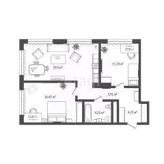 О КВАРТИРЕ: квартира 2+ с общей площадью 63,68 кв.м., включая просторную кухню-гостиную в улучшенной черновой отделке.
