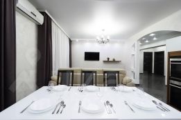 Квартира продается со всей мебелью и техникой, которые Вы видите на фотографиях, а именно: кухонный гарнитур итальянской фирмы Aran (привезен из Италии), столешница и литая раковина изготовлены из камня, встроенный холодильник Neff, встроенная морозильная камера Electrolux, посудомоечная машина Electrolux, варочная панель, духовой шкаф и встроенная пароварка Siemens, обеденная зона со стульями, полностью оборудованная спальная комната и две детских. Также в каждой комнате установлены кондиционеры фирмы Electrolux.