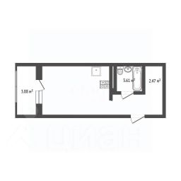 Квартира имеет функциональную планировку. Высота потолков 2,7м. При входе имеется гардеробная 2,5м2; санузел 4м2, где можно установить полноценную ванну; комната 17м2, в которой комфортно разместить кухонную зону; лоджия в 3,88м2, застеклённая и используется как правило под рабочую зону или зону отдыха.