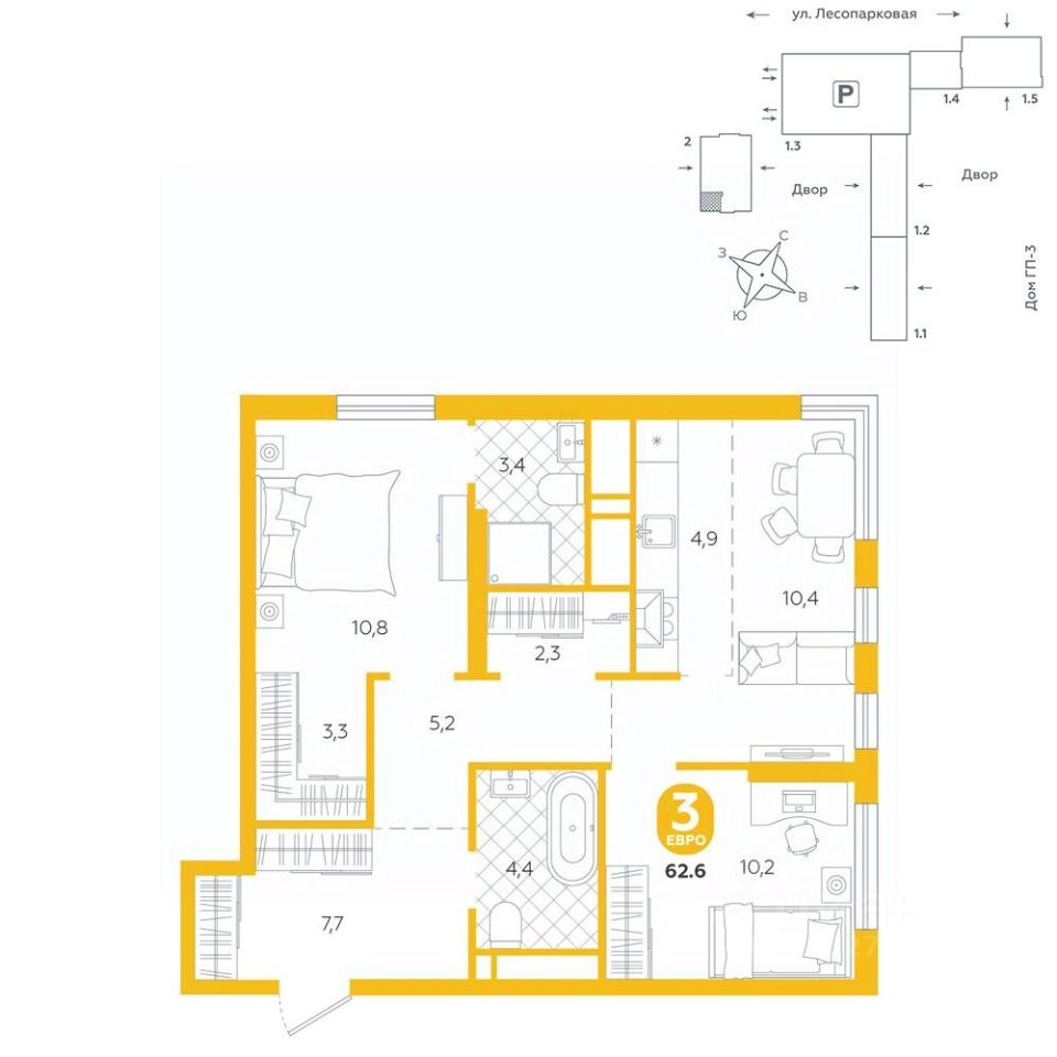 Квартира располагается в ГК "Чистые Пруды" от "Паритет девелопмент". Это флагманский проект компании в Тюмени.