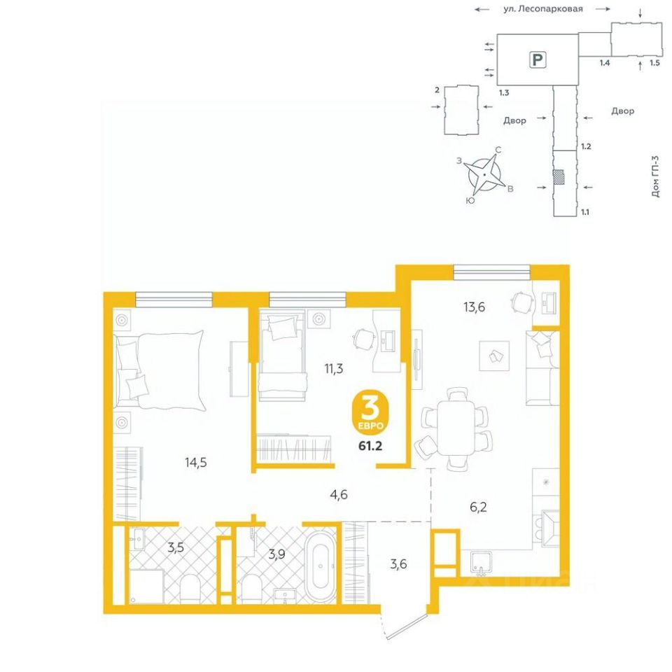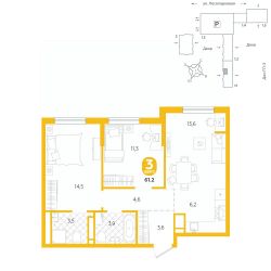 площадь квартиры - 61,2 кв.мГармоничные пропорции и большие окна наполняют пространство светом, создавая уютную атмосферу. Умное зонирование позволяет удобно организовать как рабочую, так и жилую зоны, что особенно важно для современных жителей. Санузел спроектирован с учетом всех потребностей: здесь есть ванна и место для стиральной машины. Каждый метр квартиры используется с максимальной эффективностью, что делает эту планировку отличным выбором для тех, кто ценит комфорт и удобство.