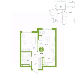 площадь квартиры - 37,4 кв.мГармоничные пропорции и большие окна наполняют пространство светом, создавая уютную атмосферу. Умное зонирование позволяет удобно организовать как рабочую, так и жилую зоны, что особенно важно для современных жителей. Санузел спроектирован с учетом всех потребностей: здесь есть ванна и место для стиральной машины. Каждый метр квартиры используется с максимальной эффективностью, что делает эту планировку отличным выбором для тех, кто ценит комфорт и удобство.