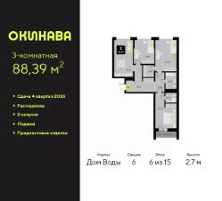 Просторная 3-комн. квартира с предчистовой отделкой в ЖК "Окинава" на 6 этаже. Общая площадь: 88.39 кв.м., жилая: 42.6 кв.м., площадь просторной кухни-столовой: 16.16 кв.м. Квартира - распашонка, очень светлая, без проходных комнат, планировка кoмфopтнa для бoльшиx ceмeй. В квартире одна лоджия, два совмещенных санузла. Высота потолков 2.7 м.