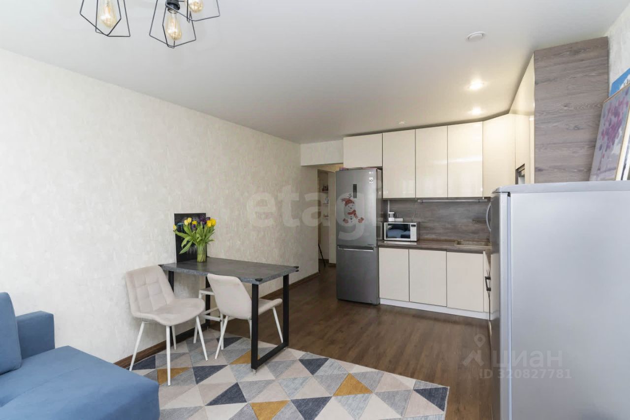 При продаже остается современный кухонный гарнитур с духовым шкафом, варочной поверхностью, посудомоечной машиной и вытяжкой, а также стол и стулья. В комнате вас ждет функциональный шкаф-купе, который поможет организовать пространство.