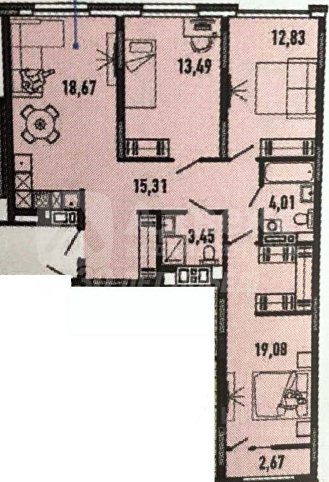 Просторная 3 комнатная квартира в новом жилом комплексе Мозаика Парк/
