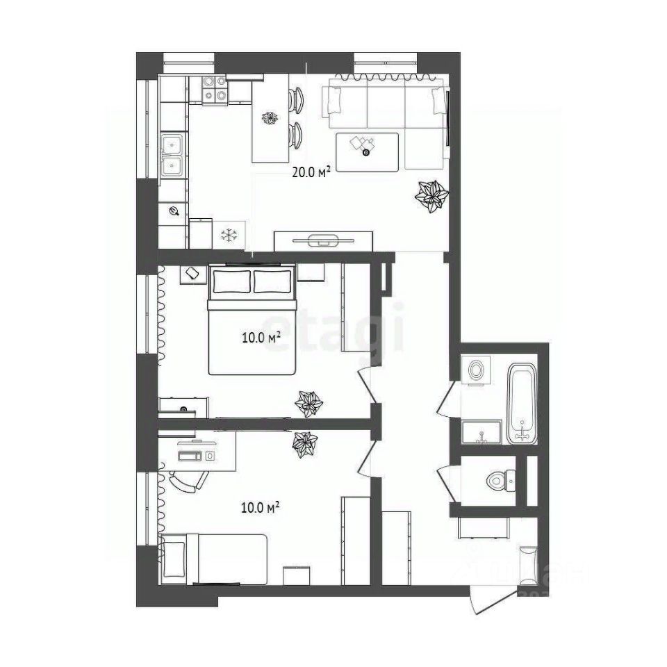 две отдельные комнаты по 10 м² (идеально для спальни, детской или кабинета).