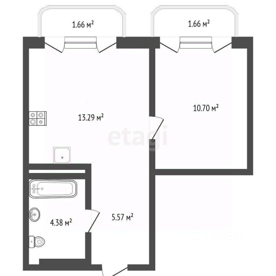 Компактная кухня-гостиная площадью 13,29 кв.м. станет центром вашего домашнего уюта, а уютная спальня площадью 10,7 кв.м. обеспечит вам комфортный отдых и спокойный сон. Санузел общей площадью 4,38 кв.м. и прихожая площадью 5,74 кв.м. обеспечат вам максимальную функциональность и комфорт.