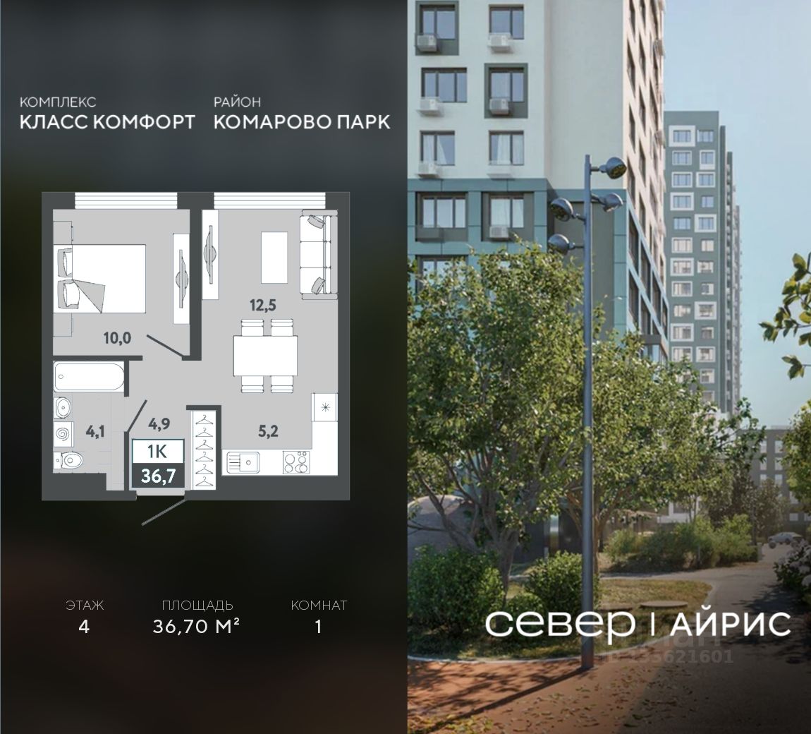 Продаётся квартира площадью 36.70 м2 в жилом комплексе "Айрис".