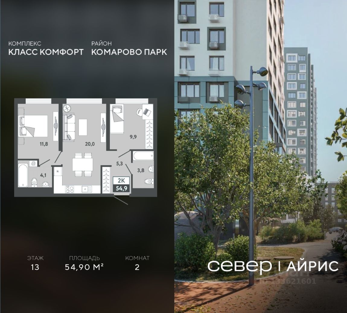 Продаётся квартира площадью 54.90 м2 в жилом комплексе "Айрис".