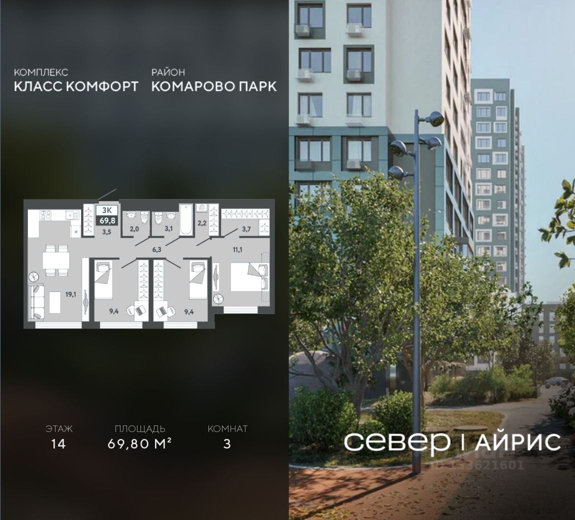 Продаётся квартира площадью 69.80 м2 в жилом комплексе "Айрис".