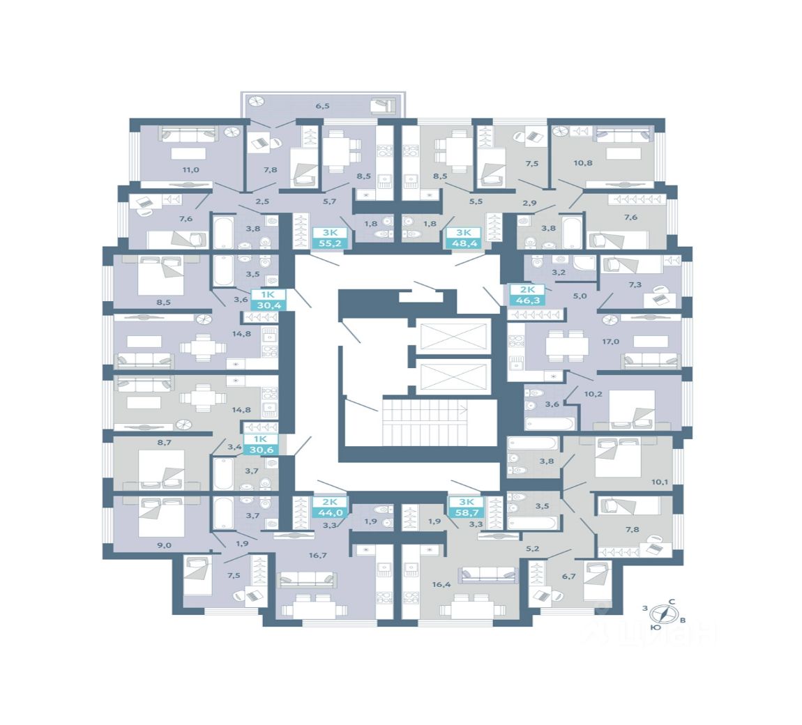 Продаётся квартира площадью 58.70 м2 в жилом комплексе "Айрис".
