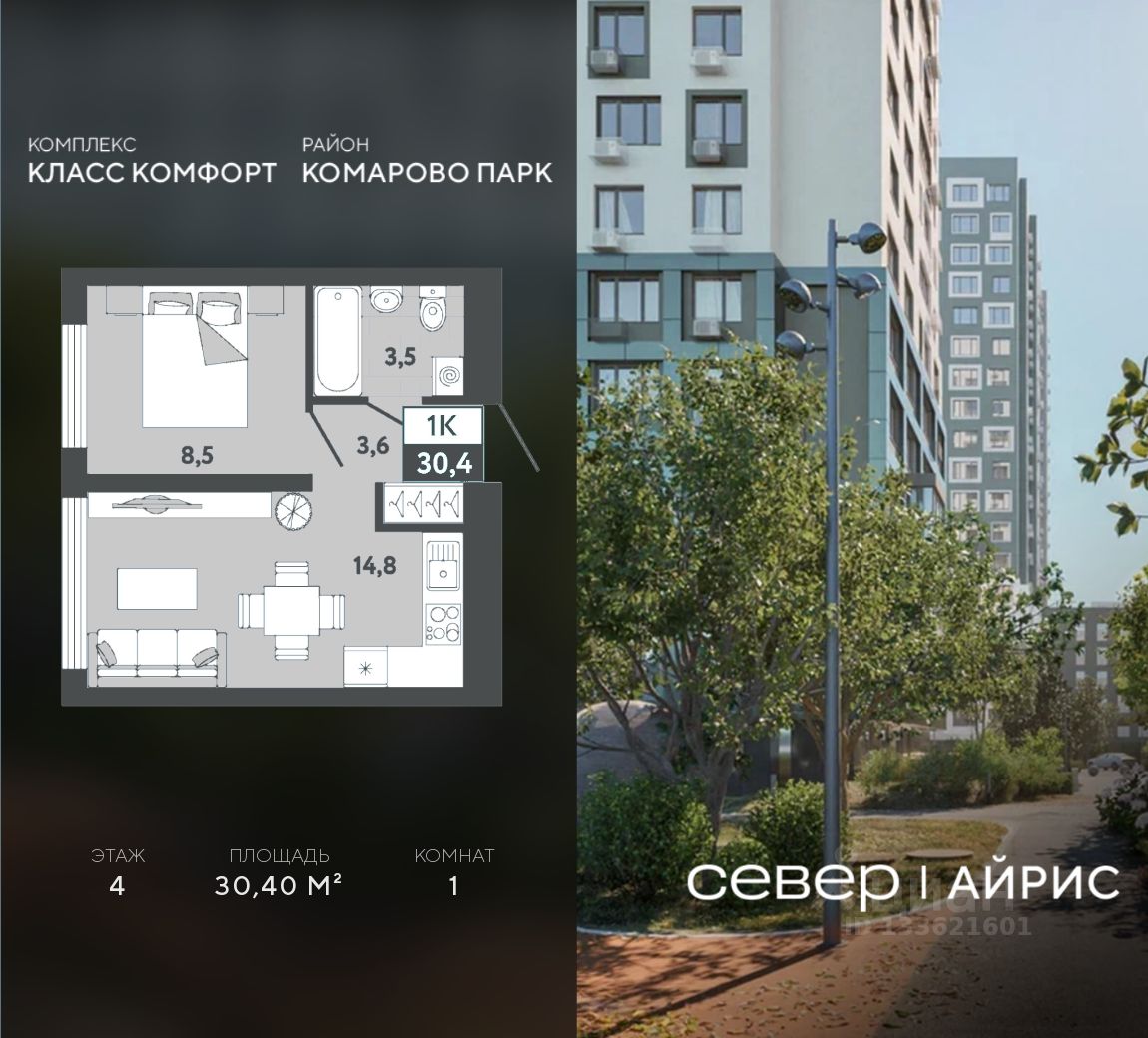 Продаётся квартира площадью 30.40 м2 в жилом комплексе "Айрис".