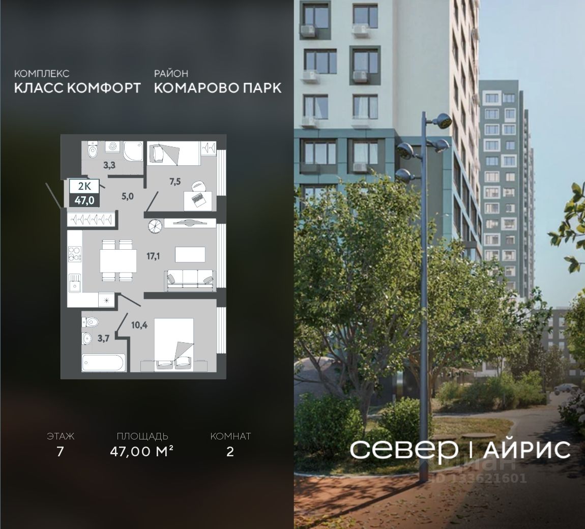 Продаётся квартира площадью 47.00 м2 в жилом комплексе "Айрис".