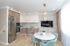 Просторную кухню-гостиную площадью 17 м², идеально подходящую для семейных вечеров и встреч с друзьями.