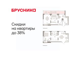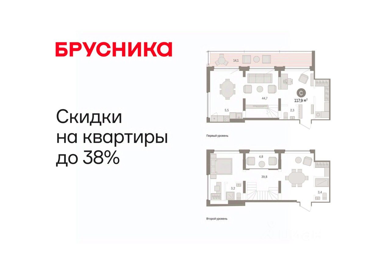 Квартира с кухней-гостиной и двумя спальнями в жилом районе "Речной порт". Особенности планировки: двухуровневая, свободная планировка, терраса на крыше, тёплая лоджия.