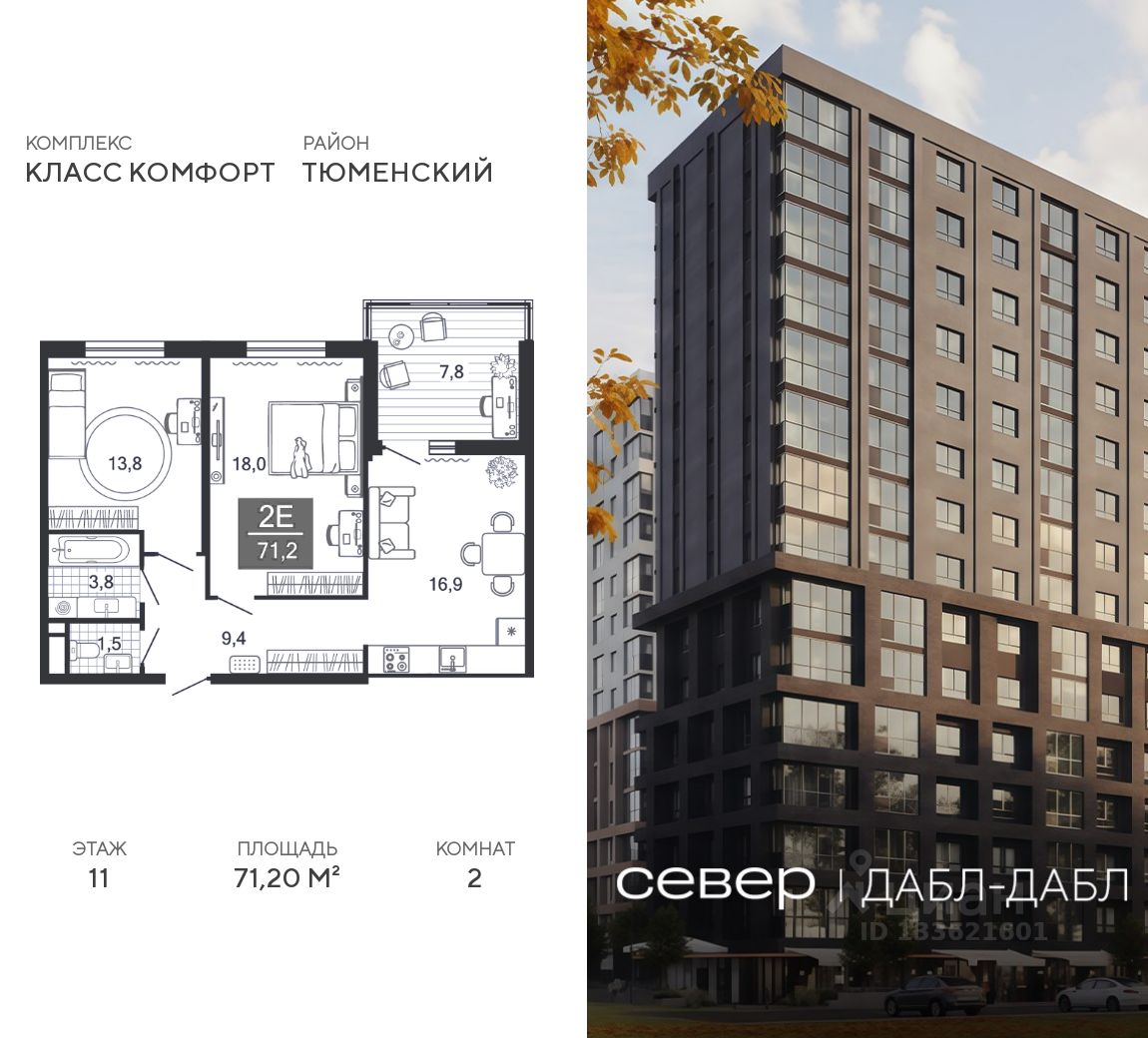 Продаётся квартира площадью 71.20 м2 в жилом комплексе "Дабл-Дабл". Квартира находится на 11 этаже, жилая площадь квартиры 31.80 м2, площадь просторной кухни — 16.90 м2. Среди особенностей планировки — изолированные комнаты с окнами на одну сторону, 1 совмещённый санузел.