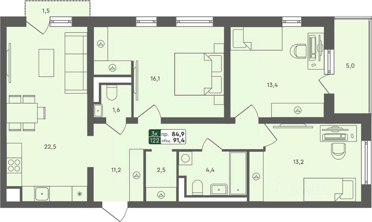 Продаётся 3-комнатная квартира в строящемся доме (ГП-3 (Бульварная, 2)), срок сдачи: IV-кв. 2025, общей площадью 91.4 кв.м., на 2 этаже. Проект в формате "Дома не выше сосен" отражает синтез великолепной архитектуры, престижной инфраструктуры и разумной стоимости. Жилье повышенного качества по доступной цене городского типа (квартиры), таунхаусы и индивидуальные дома с земельными участками характеризуются высокой транспортной доступностью исторического Тобольского тракта и формируют гармоничную и экологичную среду для комфортного проживания.
