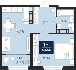 1-комн. квартира от застройщика с предчистовой отделкой в ЖК "Прео" на 5 этаже. Общая площадь: 43.45 кв.м., жилая: 15.41 кв.м., площадь просторной кухни-столовой: 14.98 кв.м. Все окна выходят на одну сторону. В квартире один совмещенный санузел. Высота потолков 2.7 м.